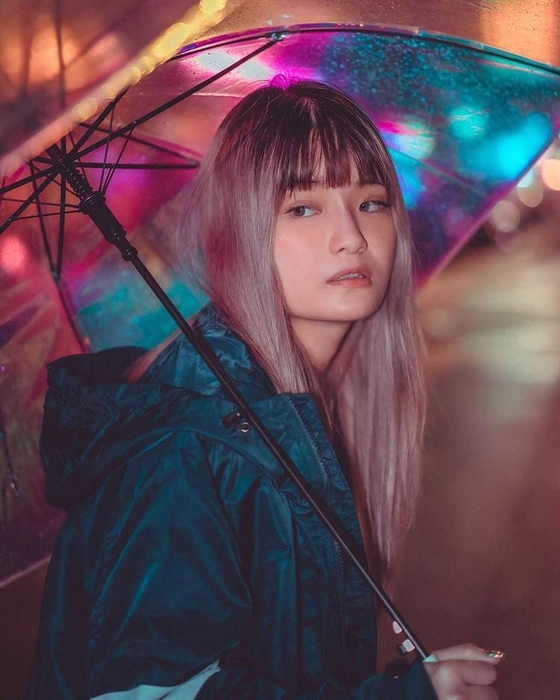 傘本体だけでなく、オーロラ色の影が地面や水溜まりに映し出されエモい写真を撮ることが出来ます。