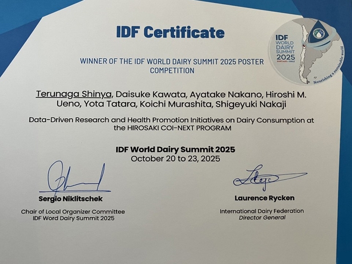 ワールドデーリーサミット2025にて「最優秀ポスター賞」を受賞 弘前大学との共同研究による乳製品摂取と健康増進への貢献を発信