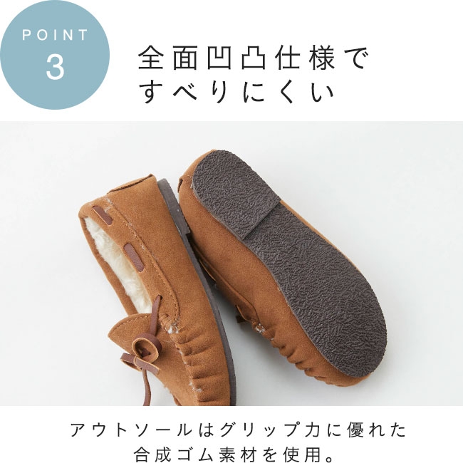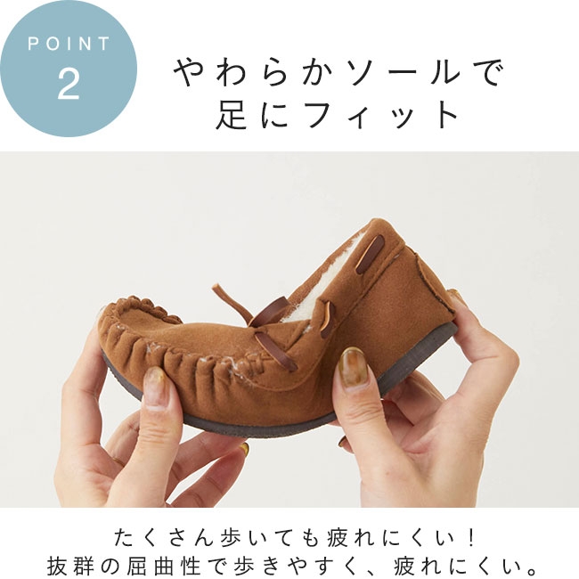 やわらかいファーだけでなく、高いクッション性を兼ね備えているので、たくさん歩く日も快適。