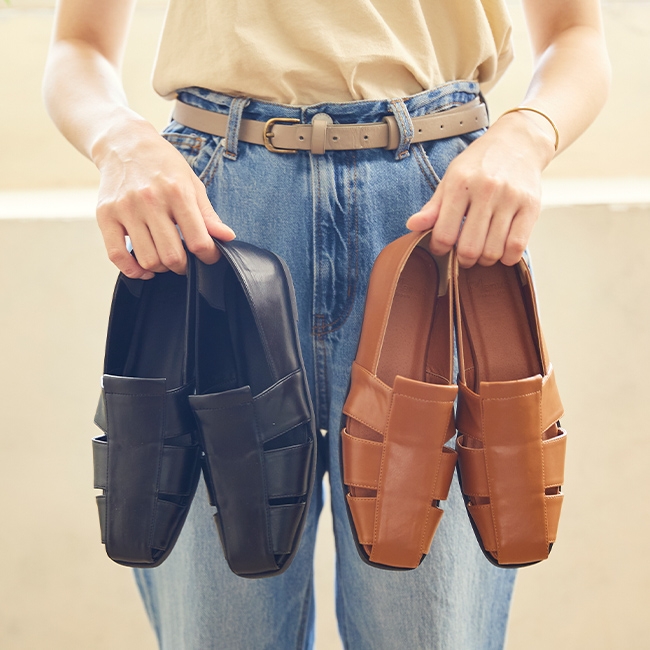 サンダルの軽快さとパンプスのきっちり感をいいとこどりしたようなデザイン。