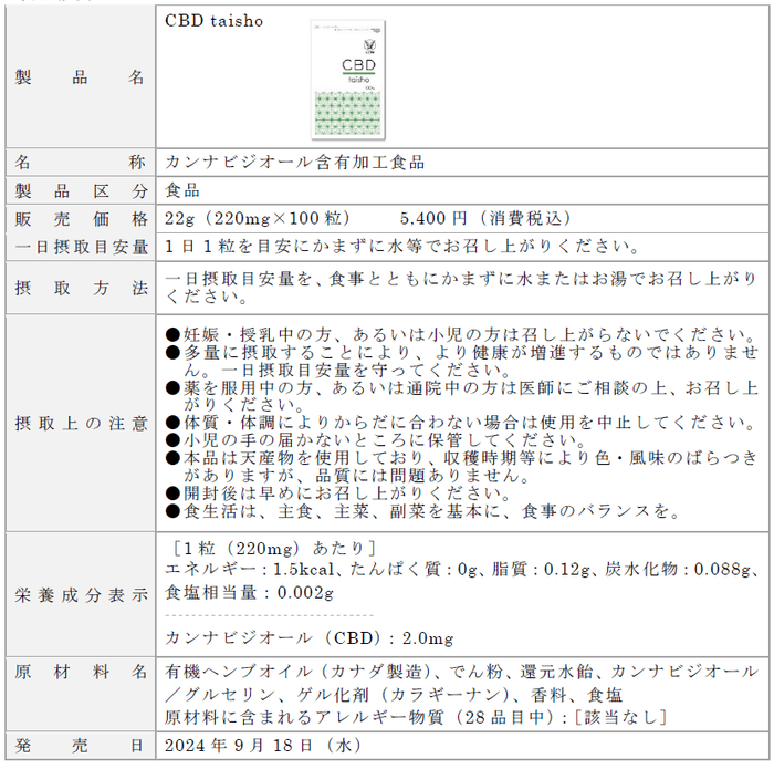 「CBD taisho」 新発売
