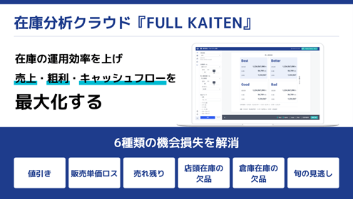 「在庫最適化=現金化=安くさばく」と捉えられがちですが、在庫の質を見極めて、何も手をつけない商品、露出を強化する商品、値引きをする商品に区分けすることによって、粗利のプラスに貢献できます。ただし、それを手作業でマネジメントするのには限界があるのが課題でした。それをテクノロジーの力で、容易に明示してくれるのがFULL KAITENです。