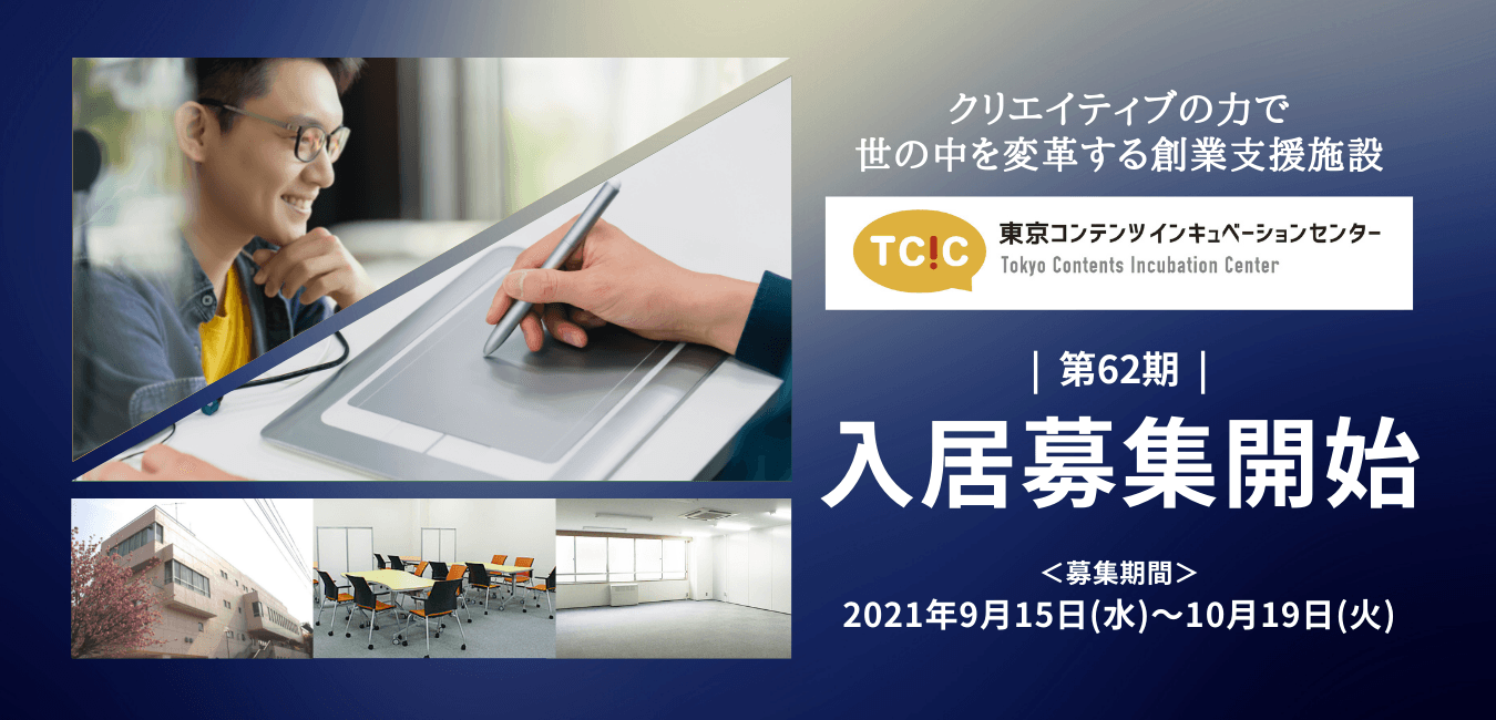 クリエイターとプロデューサーが集う東京・中野の 東京コンテンツインキュベーションセンター(TCIC)が 第62期の入居募集を開始。