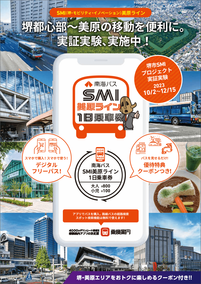 堺都心部~美原の移動を便利に! 「南海バス SMI美原ライン 1日乗車券」をモバイルチケットで販売