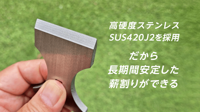 独自の角度設計と、薪を引き裂く脚部構造により、針葉樹はもちろん、広葉樹の薪も割ることが可能。小さくても、その性能は本格派です。