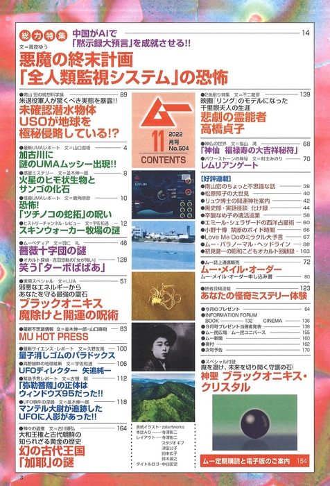 総力特集は、悪魔の終末計画「全人類監視システム」の恐怖 月刊「ムー」11月号発売‼