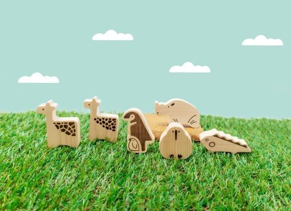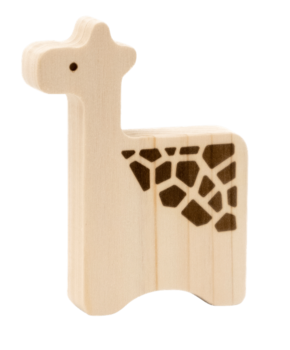 天王寺動物園で暮らす、キリン(2種類)、サイ、イグアナ、ペンギン、キーウィの合計6体を木製マグネットにしました。