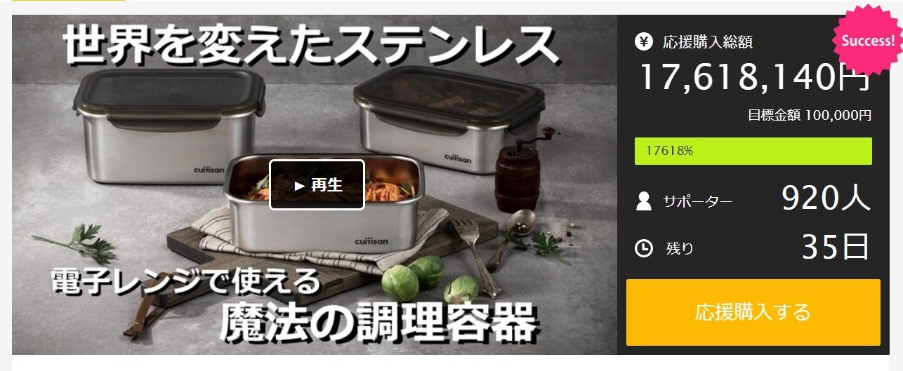 “販売わずか1分で目標金額達成!総支援額1,760万円突破!” 地球上で唯一、世界初の電子レンジで使えるステンレス調理容器