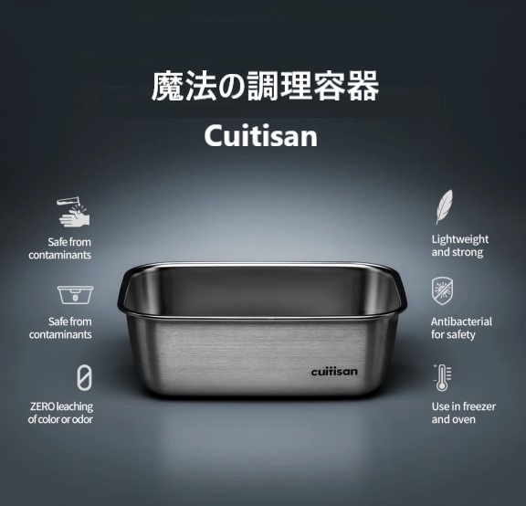 Cuitisanは、革命的なステンレス技術でその問題点をクリアし、世界で唯一、電子レンジで使用できるステンレス容器を誕生させました。さらにスタイリッシュなデザインで、単なる保存容器を洗練された調理容器に進化させました!!
