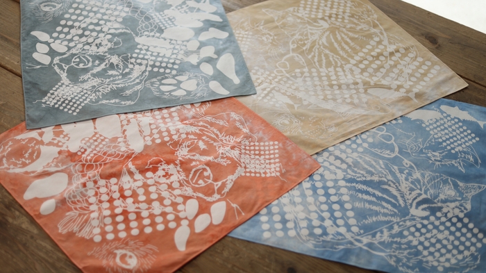 - ハンカチを染色するとモチーフが浮き出るサプライズ!