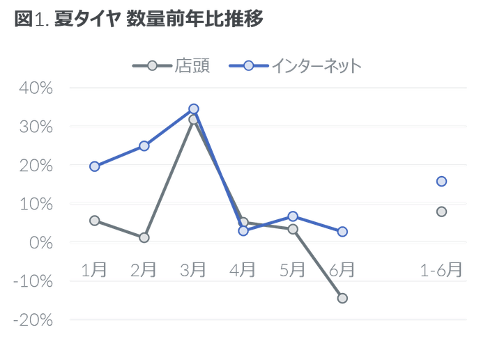 ・ タイヤは数量前年比14%増と好調で、平均価格は店頭、インターネットともに5%上昇した。