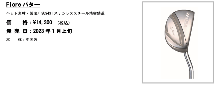 ヨネックス株式会社(代表取締役社長:アリサ ヨネヤマ)は、楽に振り切れる軽さで、もっとゴルフを楽しみたい、スコアアップを目指したい、という女性ゴルファーに向けた「Fiore(フィオーレ)」シリーズを2023年1月上旬に発売いたします。