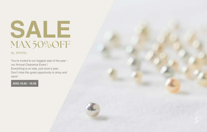 “真珠の街 神戸”にて長年にわたり真珠の卸売業を営んできた株式会社スピカ(所在地:兵庫県神戸市)が運営する、あこや真珠を使用したパールジュエリーを販売している真珠専門店「SPOPEL(スポペル)」と「PELMOIR(ペルモワ)」の2店舗で、年に一度の大決算セール2025を10月2日(木)から10月26日(日)まで開催します。