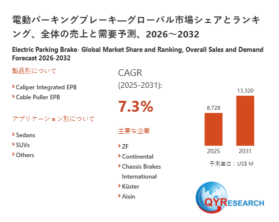 QY Research株式会社(東京都中央区)は、「電動パーキングブレーキ―グローバル市場シェアとランキング、全体の売上と需要予測、2026~2032」の最新レポートを発表しました。