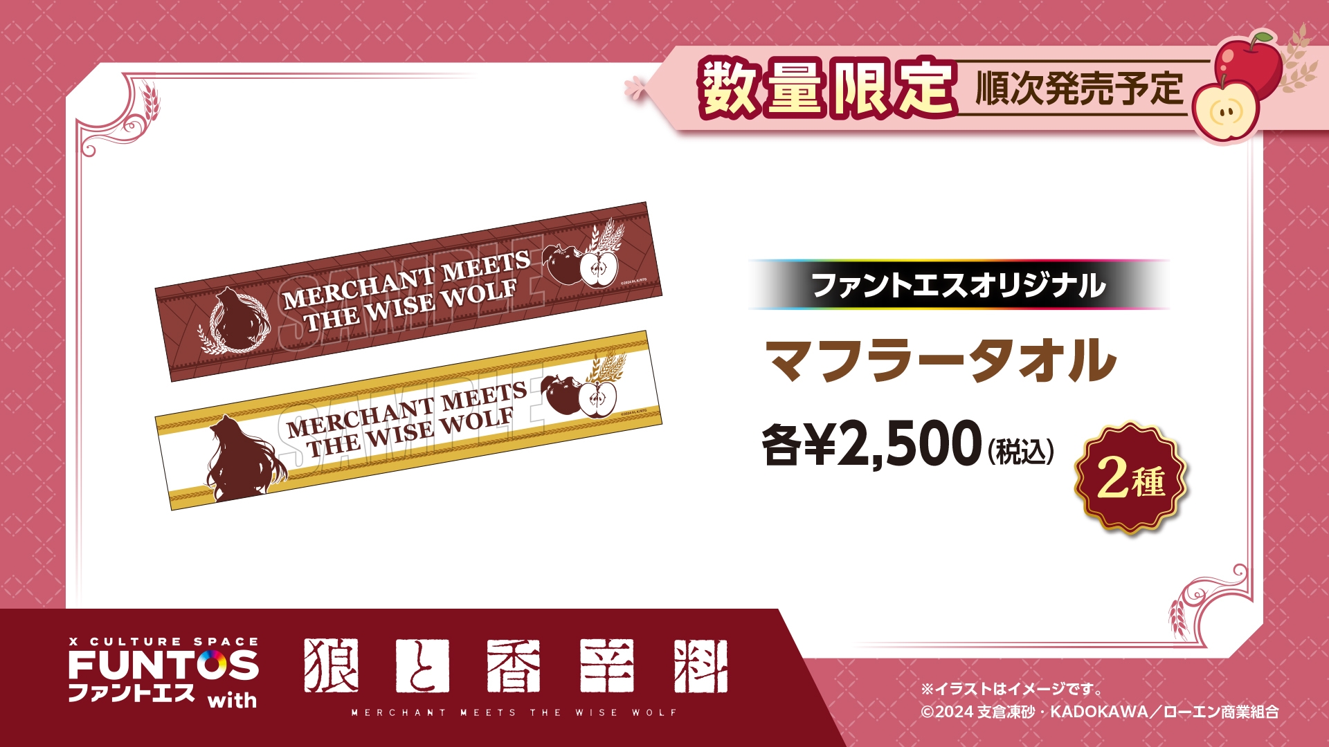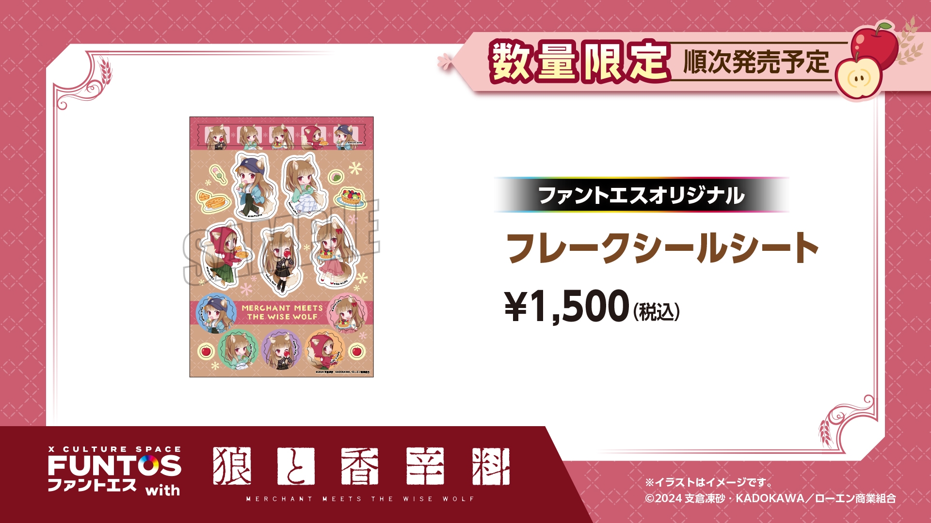 株式会社ソユーは、コラボレーションスペース事業「ファントエス」最新弾として、『ファントエス with 狼と香辛料 MERCHANT MEETS THE WISE WOLF』を全国のファントエスおよびオンラインショップにて2024年4月23日(火)~2024年5月15日(水)の期間限定で開催いたします。