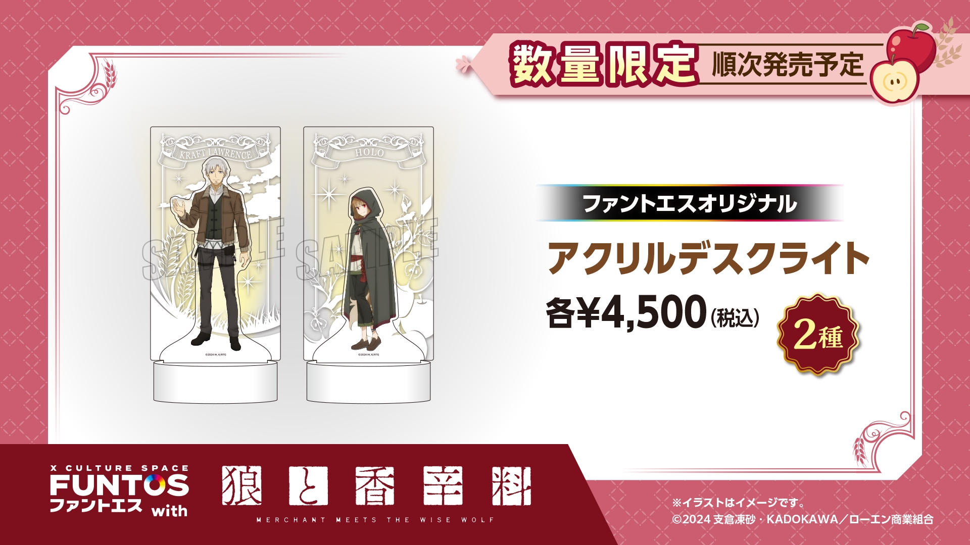 「狼と香辛料」ホロの描き起こしイラストのコラボグッズやコラボドリンクを販売!「ファントエス」コラボは4/23開始!