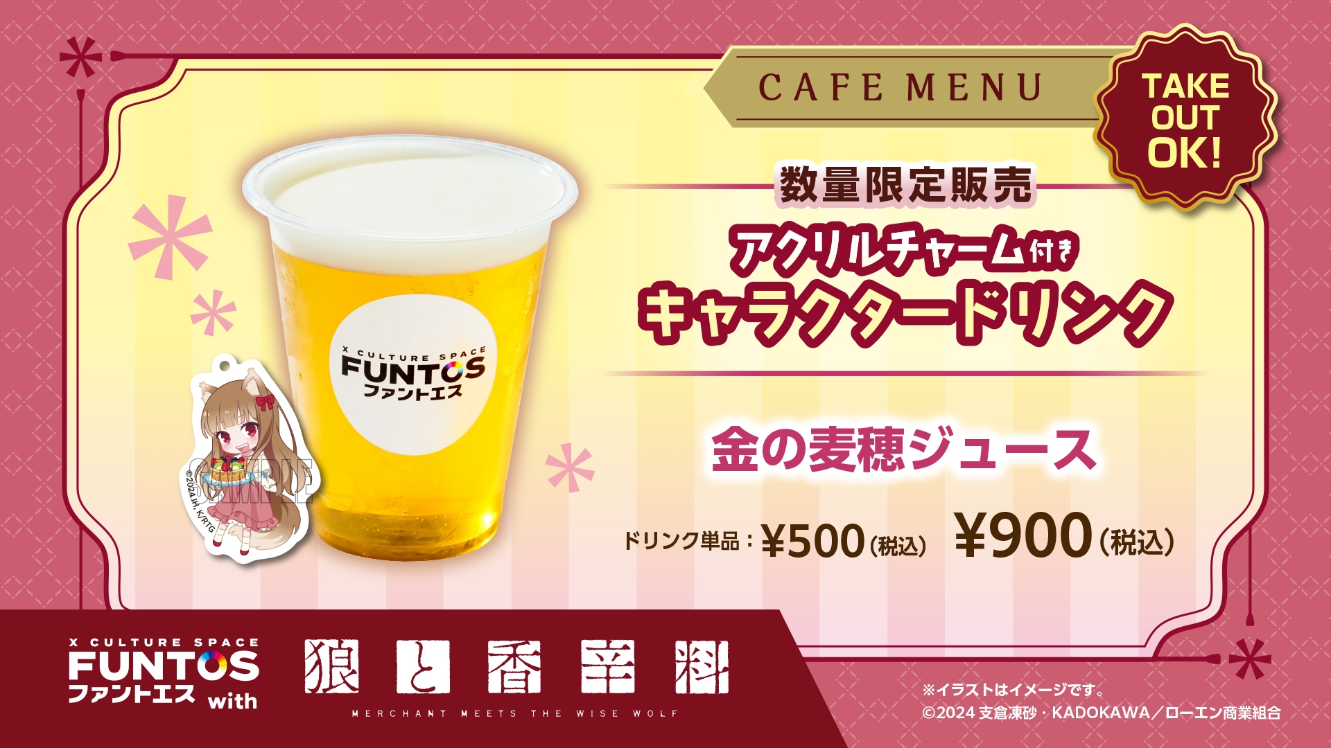 「ホロと巡る四季の物語」イラストを使用したパネルやチャーム付きドリンクも登場!『ファントエス with 狼と香辛料 MERCHANT MEETS THE WISE WOLF』は全国のファントエスにて開催!