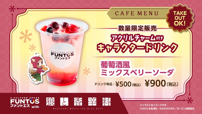 期間中(4月23日~5月15日)、アクリルチャーム付きドリンク900円(税込)、ドリンク単品500円(税込)にて提供いたします。