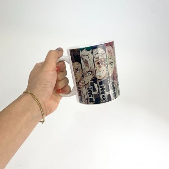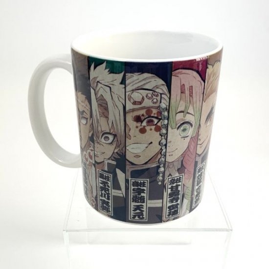 マグカップにぐるりと一周鬼殺隊の柱たちがデザインされた、カッコいいマグカップです。