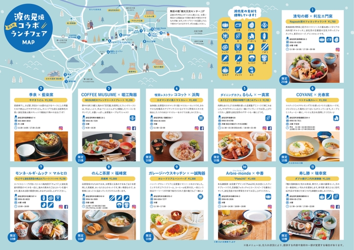 コラボランチフェアに参加している11店舗の中から3店舗でお食事後スタンプをゲット。3店舗分のスタンプを集めて、波佐見町観光協会窓口(陶芸の館1F)にお持ちいただくと応募完了です。