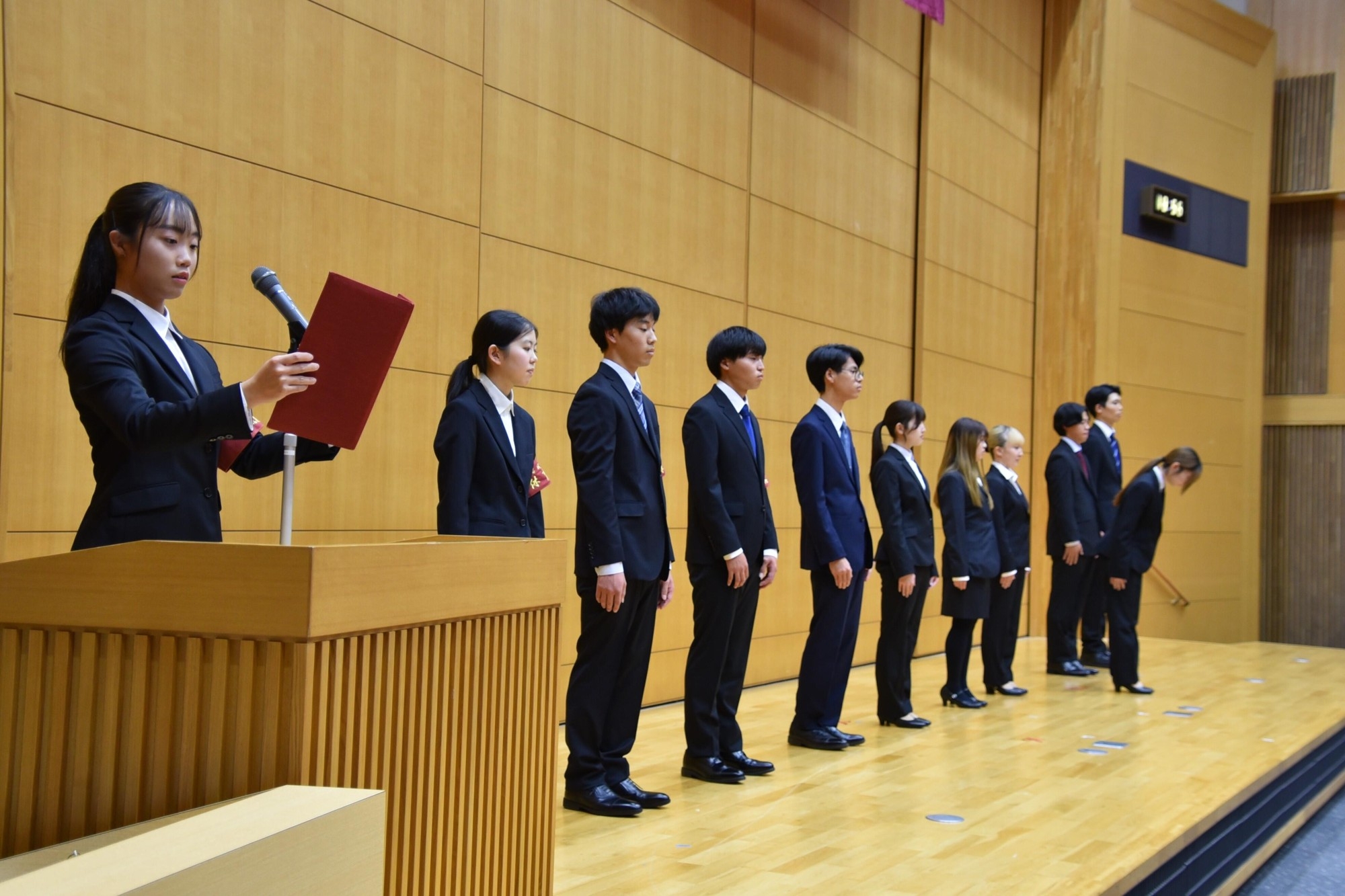 最後に、第50代会長に就任した山田寧々さん(農学部3年)が「次年度は名城大学開学100周年、そして体育会創立50周年という大きな節目の年を迎えます。先輩方が築いてこられた歴史と成果を大切に受け継ぎながら、この節目の年が次の世代へとつながる新たなスタートとなるよう、体育会が中心となって取り組んでいきます」と決意を表明。次期執行部の役員を紹介しました。