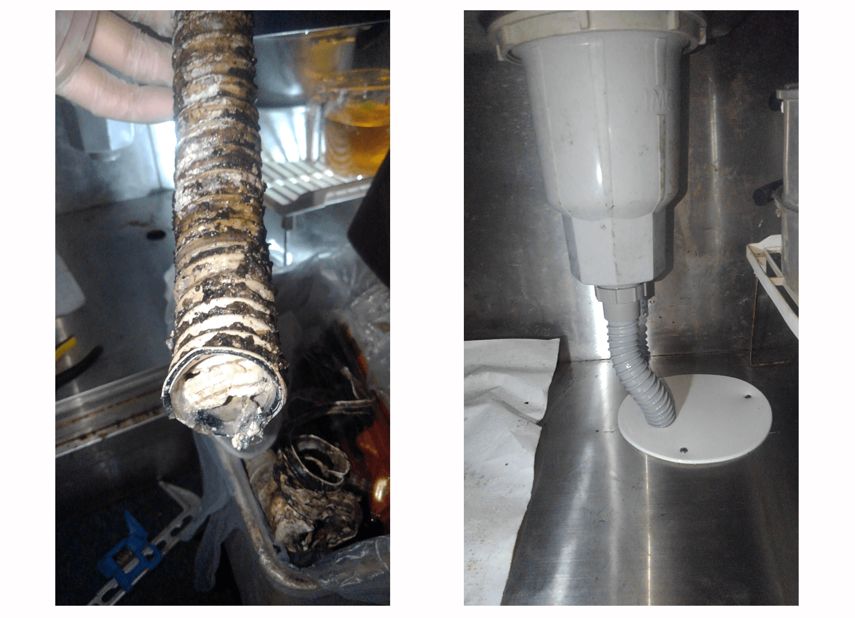 市販のパイプクリーナーで掃除したが直らないとのご依頼。排水溝やシンク下の排水管を確認したところ、油汚れが蓄積したことにより、ジャバラホースでつまりを起こしていることが判明。ジャバラホースを交換し、作業後に排水状況を点検して修理を完了。