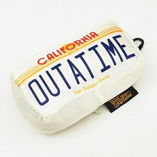 ブランケットを使わない時は、付属のポーチに収納が出来ます。この収納袋がまたファンのツボをつくやつなんです!画に登場するデロリアンのナンバープレートをイメージした「OUTATIME」柄で、ポーチそのものをおしゃれな小物入れとして使いたくなる可愛さに仕上がっています。