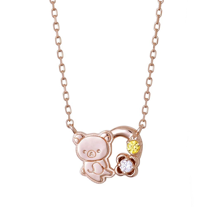 お花畑でくつろいでいるコリラックマが愛らしいネックレス。
