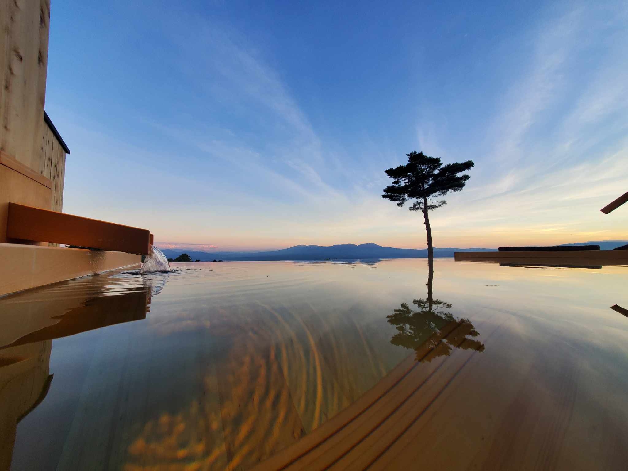 広々とした16畳の部屋の下のフロアでは、半露天風呂をお楽しみいただけます。