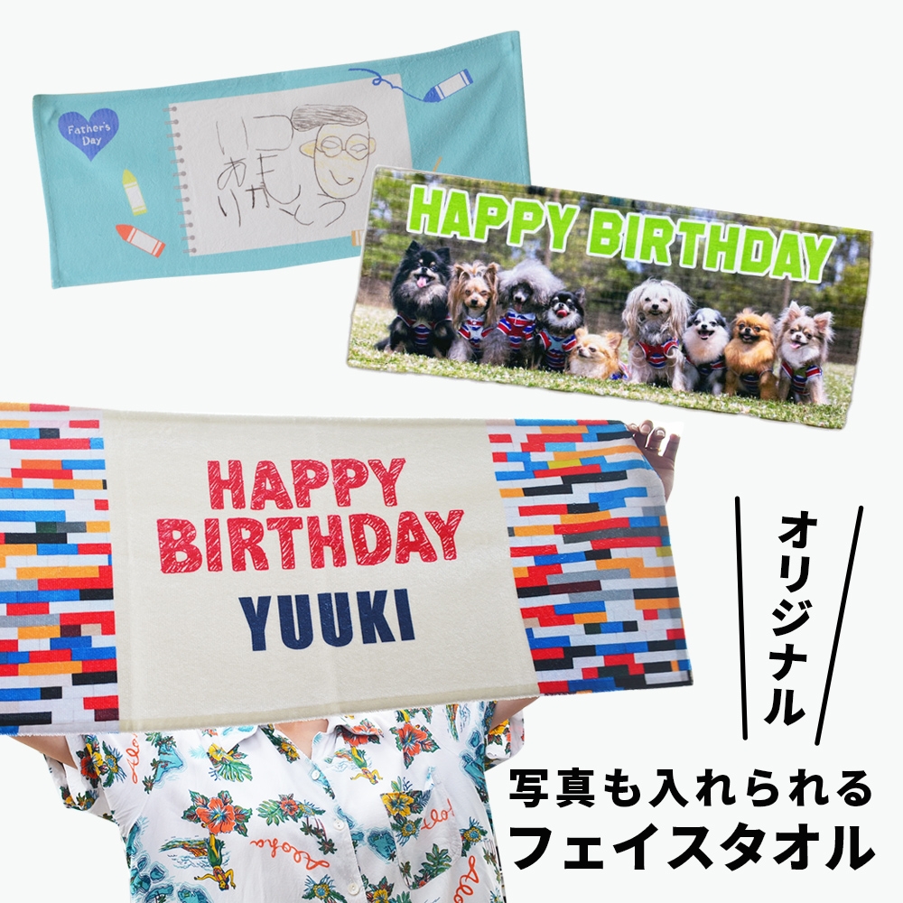 特別な日にぴったり!記念日や名前が入れられるフェイスタオルをご紹介します。誕生日やお祝いのギフトとして最適です。このほかにも、チームタオルやキッズタオル各種取り揃えています。各種タオル製品が10%OFF!