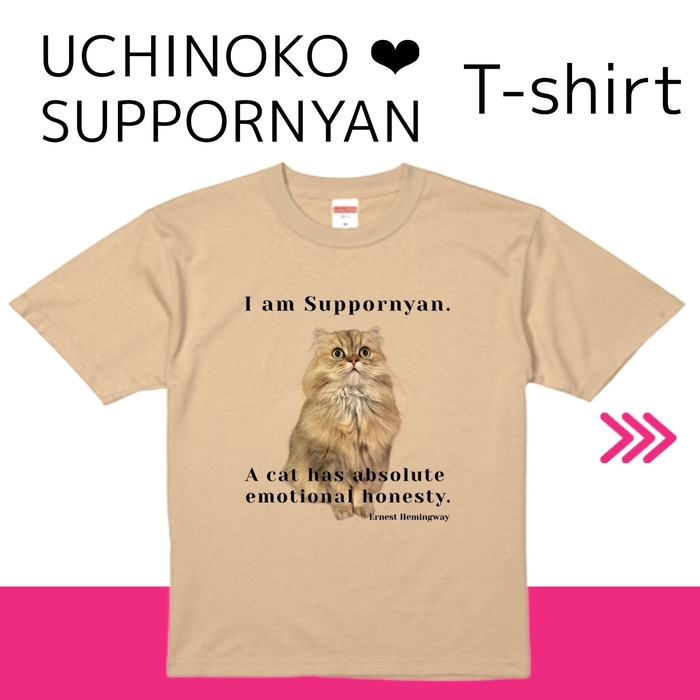 今回の「UCHINOKO ❤︎ SUPPORNYAN T-shirt」では、大の愛猫家アーネスト・ヘミングウェイの名言と愛猫ちゃんがコラボレーション。