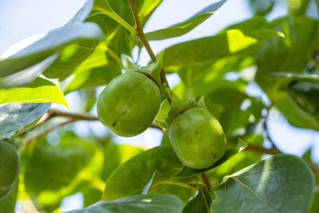 柿渋とは、柿の未熟な果実を粉砕、圧搾して得られた汁液を発酵・熟成させて得られる液体のこと。平安時代より染料や民間薬、防腐剤など様々な用途に用いられて来た日本固有の材料です。