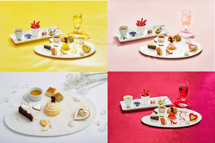 ドレスを纏ったプリンセスケーキやハイヒール型のヒールチョコ、ハート型のアイシングクッキーなど、まるでアートのようなスイーツの数々を、パレットを模したプレートの上に散りばめました。お好みでお選びいただける“推しカラー”は、系列店※で開催し好評を博したレッド、ピンク、イエロー、ブルー、グリーンの5色に加え、このたび新たにラベンダーパープル、ホワイトベージュ、ブラックの3色をラインナップに追加。全8色よりお好きなカラーをお選びいただけます。ウエディングパティシエ渾身の、乙女心をくすぐるキュートなスイーツ・パレットをご堪能ください。