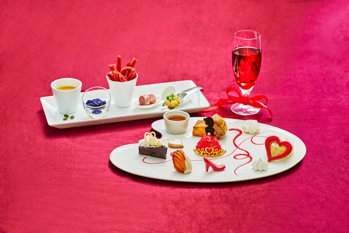 また別皿でご提供するセイボリープレートは、一口サイズの軽食5品で5つのカラーを表現。ドリンクは“推しカラー”のファーストドリンクに加え、コーヒーや紅茶が飲み放題となっており、ゆったりとした優雅なひとときをお過ごしいただけます。