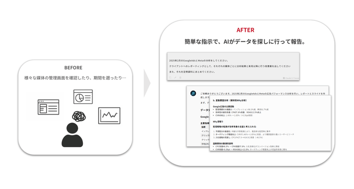 これにより、広告代理店やマーケティング担当者の業務効率を大幅に向上させ、戦略的な意思決定に注力できる環境が提供可能となります。