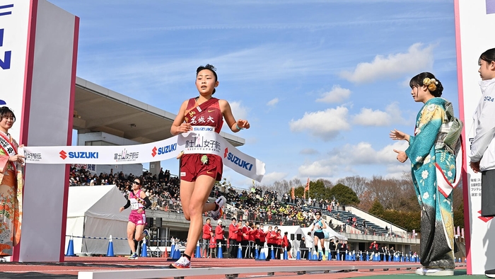 首位争いは白熱し、立命館大学の福永楓花選手(4年)が区間新記録(19分12秒)となる区間1位の快走でトップを奪い返した。日本体育大学の嶋田桃子選手(4年)も従来の区間記録を上回る19分23秒でチームを2位に押し上げる。両校の差は6秒。大東文化大学がさらに43秒差でそれに続き、勝負は最終区間へ。名城大学はこの区間終了時点でトップから3分18秒差の7位となった。