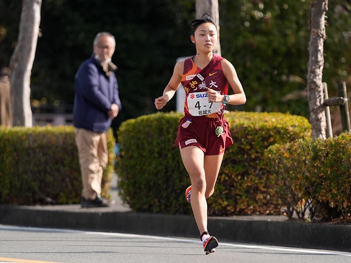 この区間では日本体育大学の齋藤みう選手(4年)が区間賞の走りで同校を9位からトップに押し上げ、大東文化大学、立命館大学がそれぞれ2、3位で中継。名城大学は先頭から1分16秒差の13位で次の区間へタスキをつないだ。