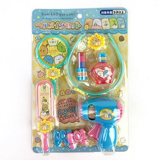 すみっコぐらしから、とってもキュートなヘアメイクセットが登場しました。ドライヤーからリップまでセットになったアイテムで、それぞれにすみっコキャラのイラストがデザインされています。ママのマネっこをしたい年頃の女の子に、超オススメですよ♪