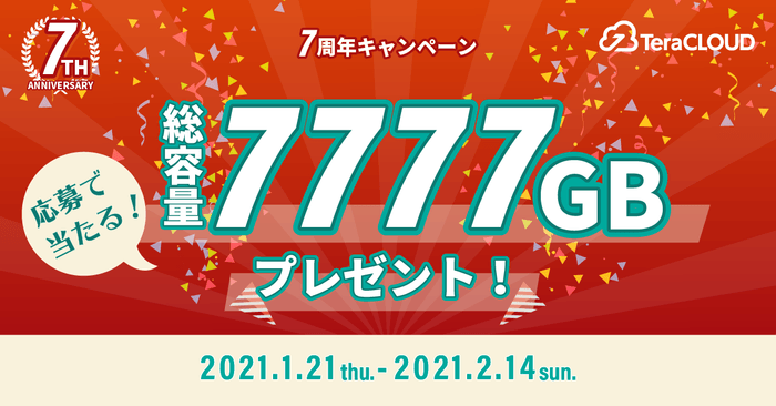 抽選で112名様に【合計7777GB】をプレゼント❗国産クラウドストレージ「TeraCloud」が7周年キャンペーンを開催❗