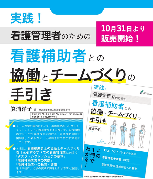 新刊のご案内『実践!看護管理者のための看護補助者との協働とチームづくりの手引き』を10月31日に刊行いたしました。