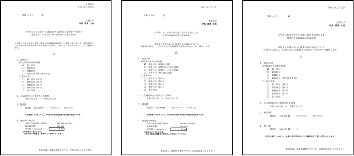 修学支援新制度の運用に欠かせない「支援金決定通知書」や「判定結果通知書」など、必要な帳票を本システムから直接出力できます。