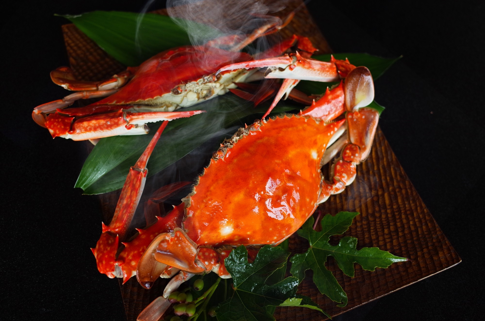 冬の瀬戸内でひときわ輝く「渡り蟹(ガザミ)」。 足の先がヒレ状で海を自在に泳ぐ特性からその名がつき、 身の締まり、濃厚な甘みは他の蟹とは一線を画します。