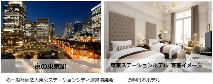 ※東京ステーションシティ内の「東京ステーションホテル」「ホテルメトロポリタン 丸の内」のいずれかにご宿泊の1泊2日間のツアーとなります。