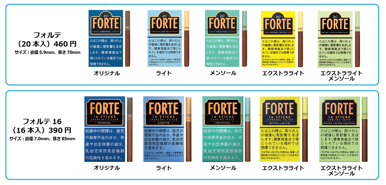 2016年の発売以来、お客様の様々なニーズにお応えし進化を遂げ、多くのお客様にご愛顧いただいております。特に、1日の平均喫煙本数に合わせて開発された1箱16本入りの「フォルテ16」は、2020年11月の発売以来、「今時ワンコインでお釣りが来るのはうれしい」、「紙くさくないのが良い」等、ご好評の声をいただいております。また、「フォルテ16のエクストラシリーズを出してほしい」という多くのご意見が寄せられ、この度、エクストラシリーズ発売の運びとなりました。