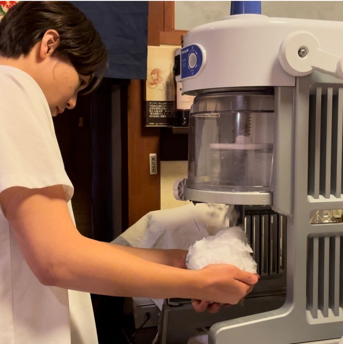 当店では、真っ白でクリーミーなヨーグルトソースがたっぷりかかったふわふわかき氷を提供しております。