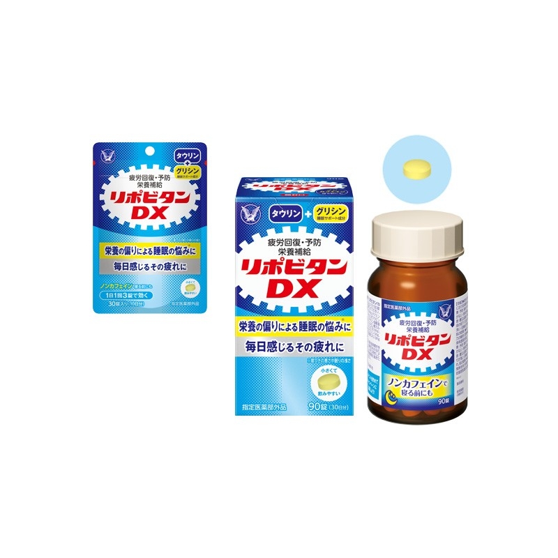 リポビタンDXは、疲労と栄養の偏りによる睡眠の悩みに同時にアプローチする指定医薬部外品です。有効成分をぎゅっと詰め込み、極薄フィルムコーティングにより飲みやすい錠剤ができました。我々の自信作をぜひお試しください。