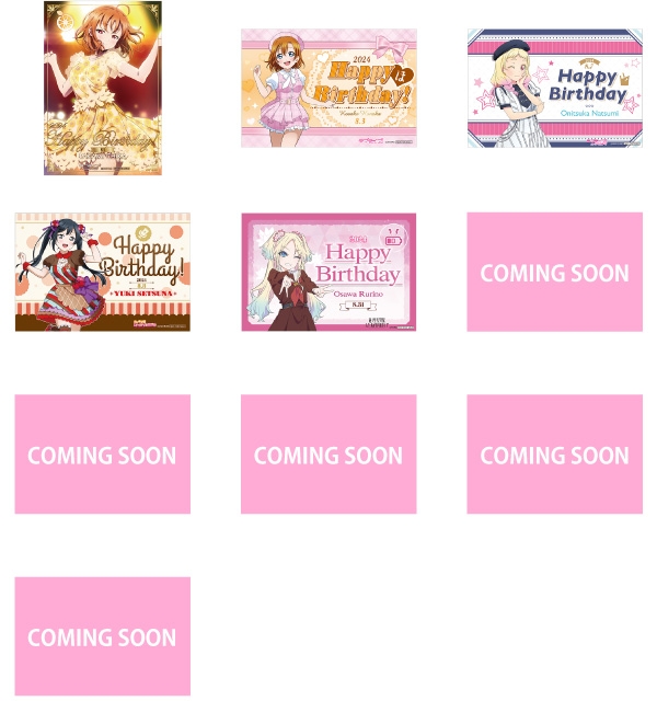 カフェ開催期間中、「ラブライブ!シリーズ」各メンバーのバースデーカードをプレゼントします。