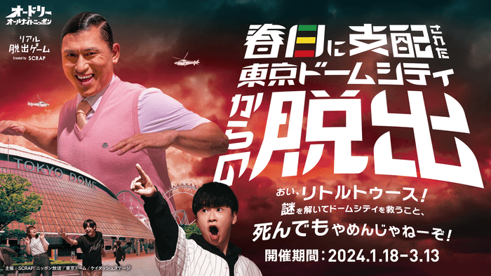 リアル脱出ゲームを主催、企画制作する株式会社 SCRAP(所在地:東京都渋谷区、代表者:加藤隆生)は、2024年1月18日(木)『春日に支配された東京ドームシティからの脱出』の公演開始にともないイベントCMを公開、そして『オードリーのオールナイトニッポン15周年展』との連動キャンペーンを行うことを発表いたします。