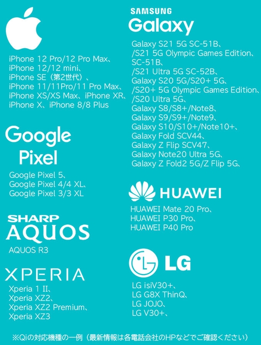 スマホにコネクタを接続せず、接触させるだけで充電ができてしまうという画期的なシステム。共通規格なので、Qiに対応している機種ならメーカーに関係なく使用できます。