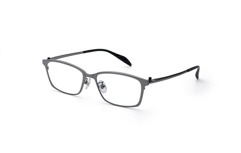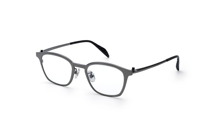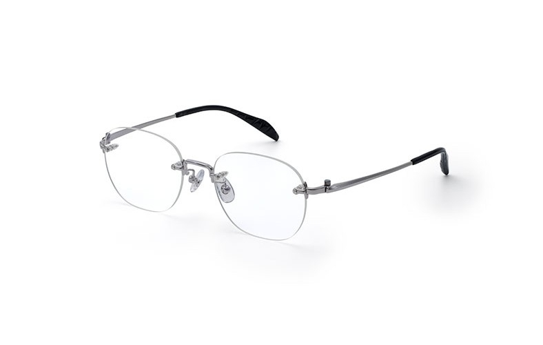 メタルフレームとしては太めなリム周りで、シャープな面カットが光の反射を演出。シート状のチタンをプレスで抜く手法で製造されています。